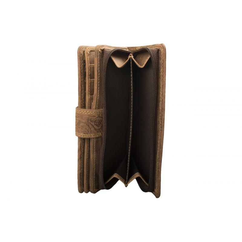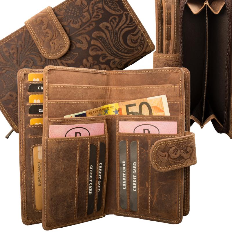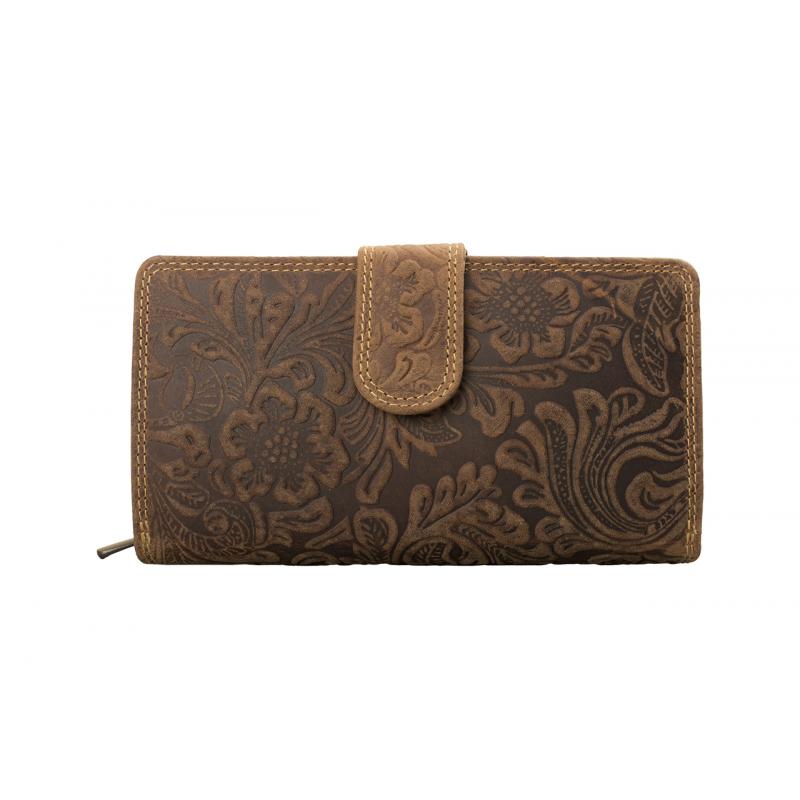 RFID Protection - Große Hunterleder Damenbörse mit Prägemotiv - braun