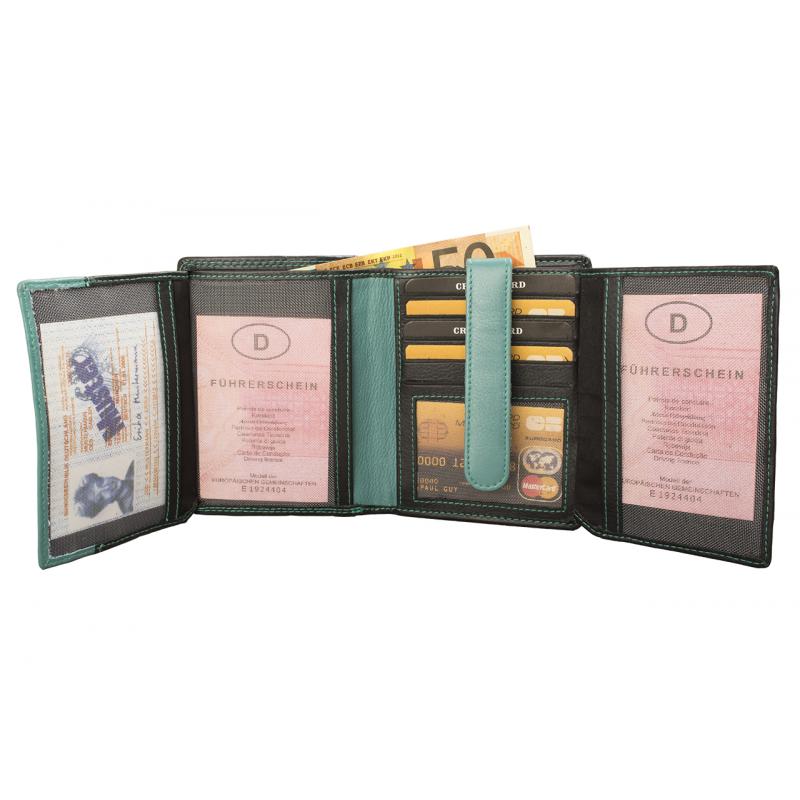 - Doppelt unterteiltes Kleingeldfach mit Rundum Reißverschluss
