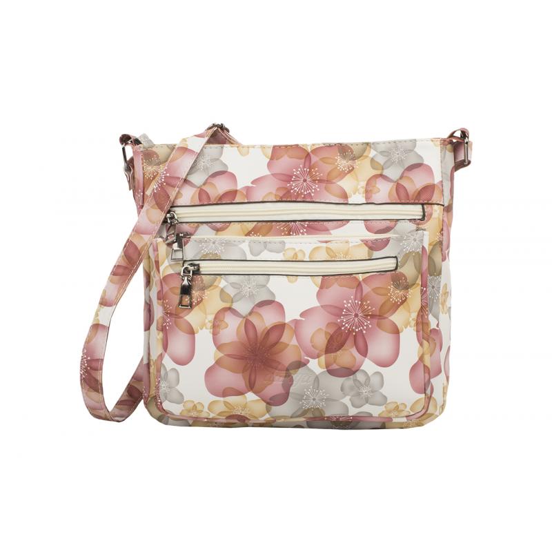 dariya® Umhängetasche mit extra Frontfachtasche mit Flowerprint rot - abwaschbar - PU